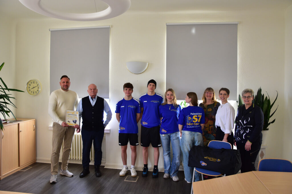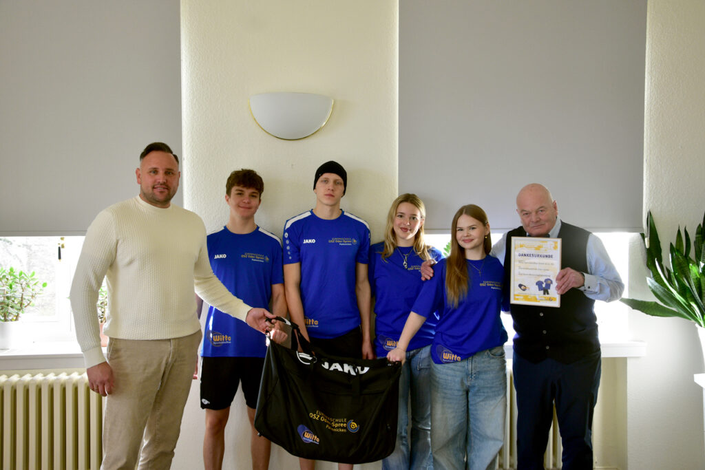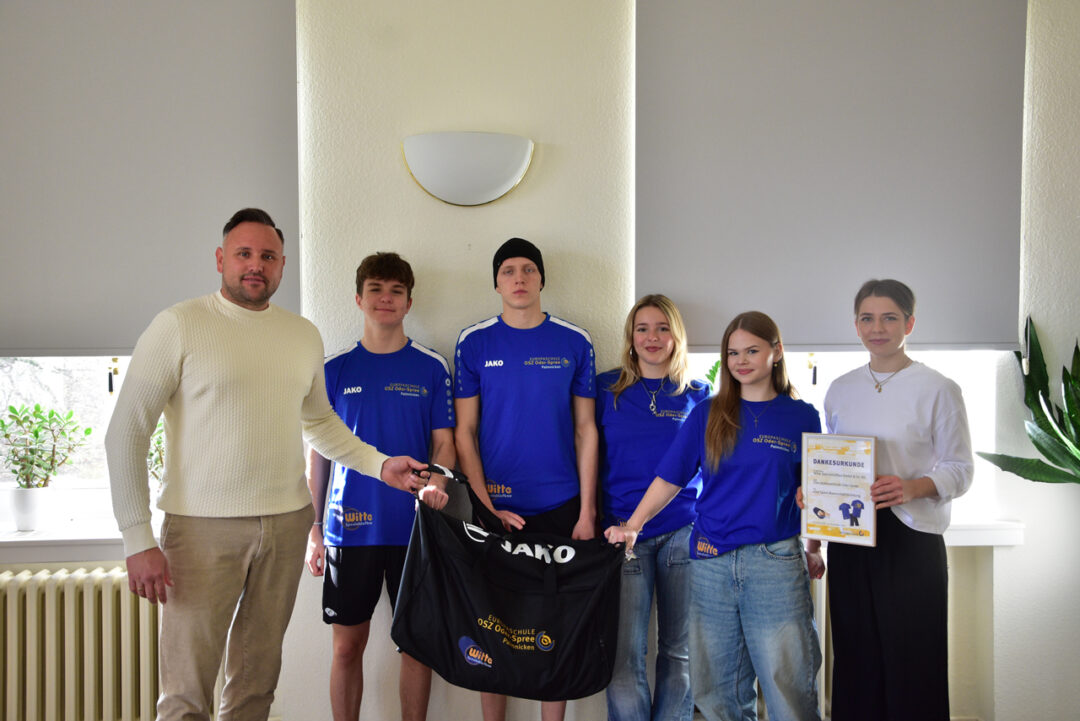 Mit voller Freude und Dankbarkeit fand an diesem Tag die Übergabe der neuen Schultrikots durch unseren Sponsor „Witte Spezialbau GmbH & Co. KG“ statt. Dipl.-Ing. Jörg Witte, und Herr Peer Figul überreichten der Sportfachschaft feierlich eine Sporttasche, bestehend aus einheitlichen Sporttrikots, Sporthosen und Präsentationsshirts für schulische Veranstaltungen.