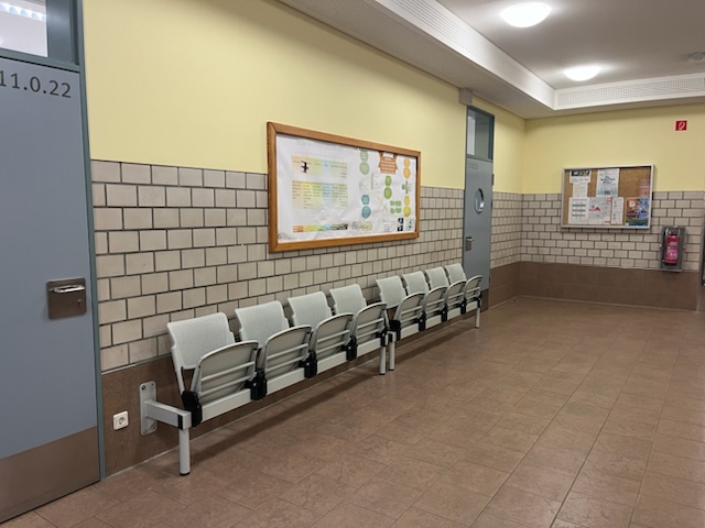 Seit 22 Jahren steht unser Haus 11 – und genauso lange dauerte bereits die Diskussion um Sitzmöglichkeiten in den Fluren. Nun endlich sind sie da: die ersten Klappsitze! Und sie werden gerne genutzt, weil das Sitzen auf dem kalten Boden nicht guttut. Wir freuen uns über diese sinnvolle Investition und wünschen dem Mobiliar ein langes Leben.
