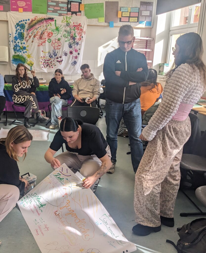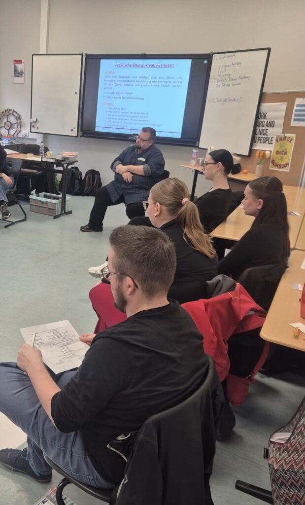 Am 11. und 12. Februar 2026 fand an unserer Schule, bereits zum zweiten Mal im laufenden Schuljahr, ein Workshop zum Thema „Geschlechtliche und sexuelle Vielfalt“ statt. Daran nahmen Schüler*innen des zweiten Ausbildungsjahres (angehende Sozialassistent*innen und Erzieher*innen) teil. Im Workshop setzten sich die Teilnehmenden intensiv mit geschlechtlicher und sexueller Vielfalt auseinander, mit besonderem Fokus auf Regenbogenfamilien. Zentrale Begriffe wurden geklärt und ein Überblick über die rechtliche sowie gesellschaftliche Situation wurde gegeben. In praktischen Übungen und Gruppenarbeiten erarbeiteten die Teilnehmenden, wie sich die behandelten Themen, sensibel, in den beruflichen Kontext integrieren lassen.